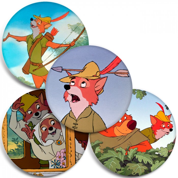 Несколько видов значков с персонажами вселенной Робин Гуд.