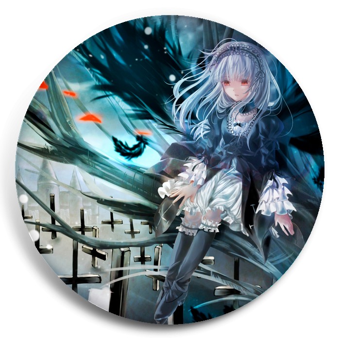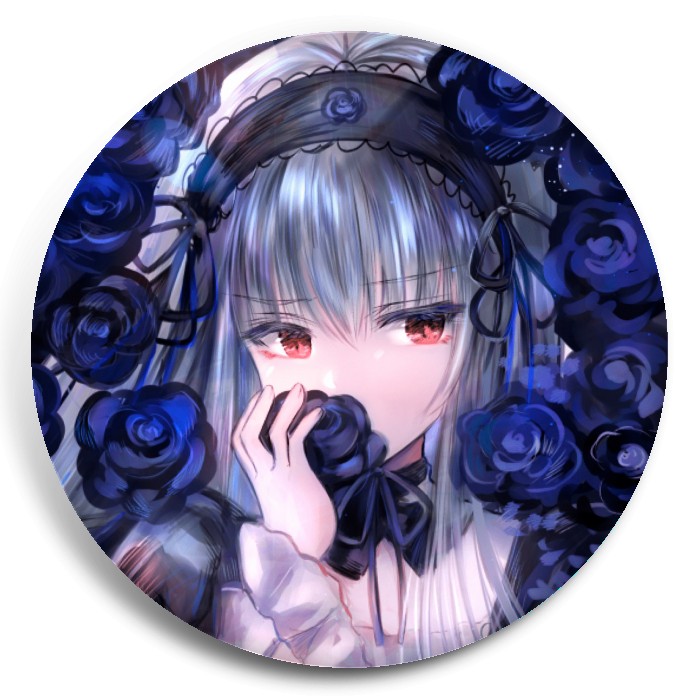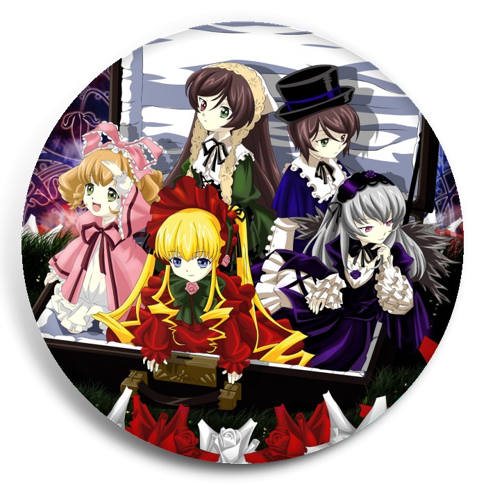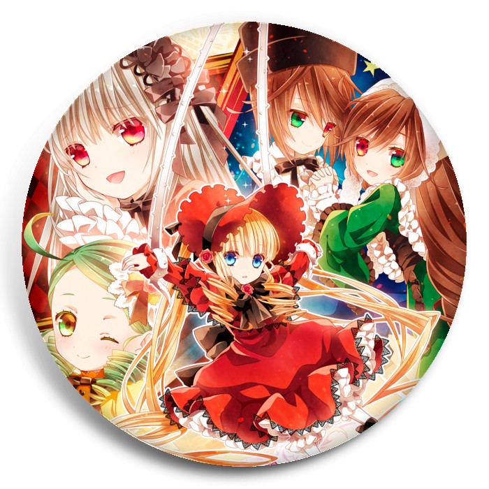 Несколько видов значков с персонажами вселенной Девы Розена.