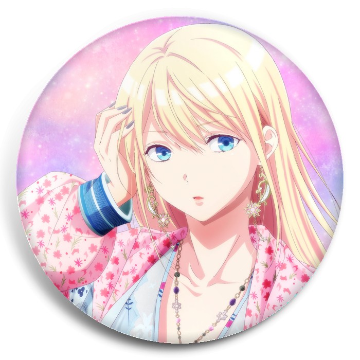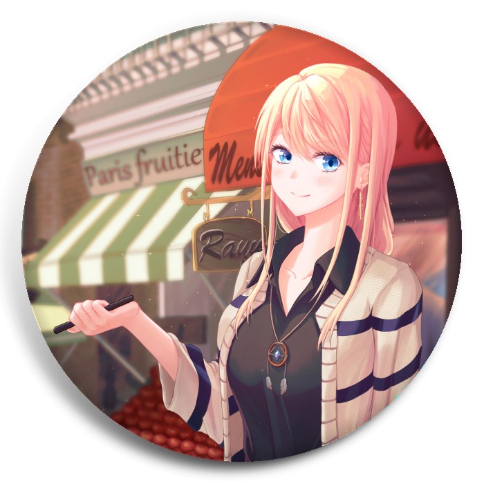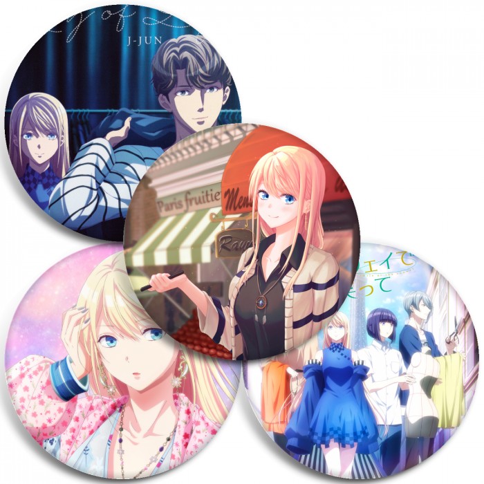 Несколько видов значков с персонажами вселенной Улыбайся на подиуме.