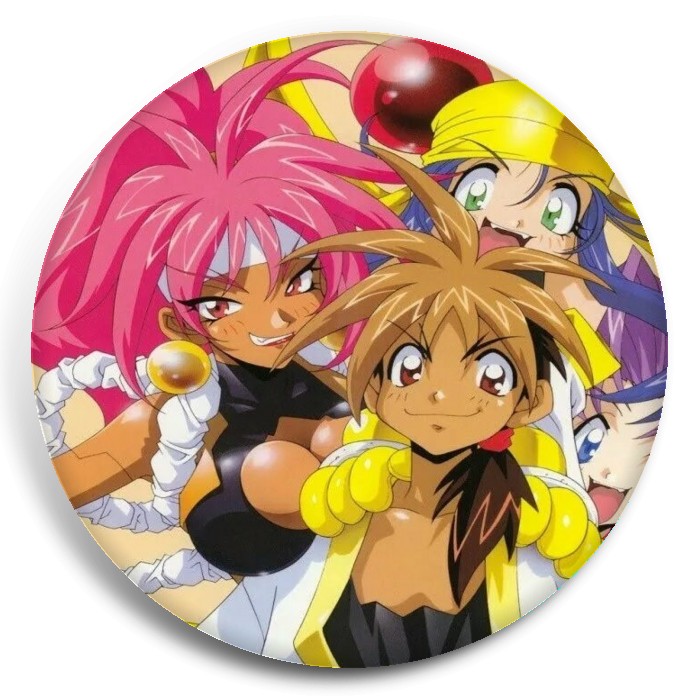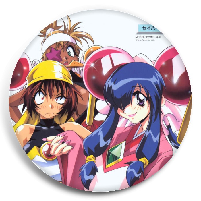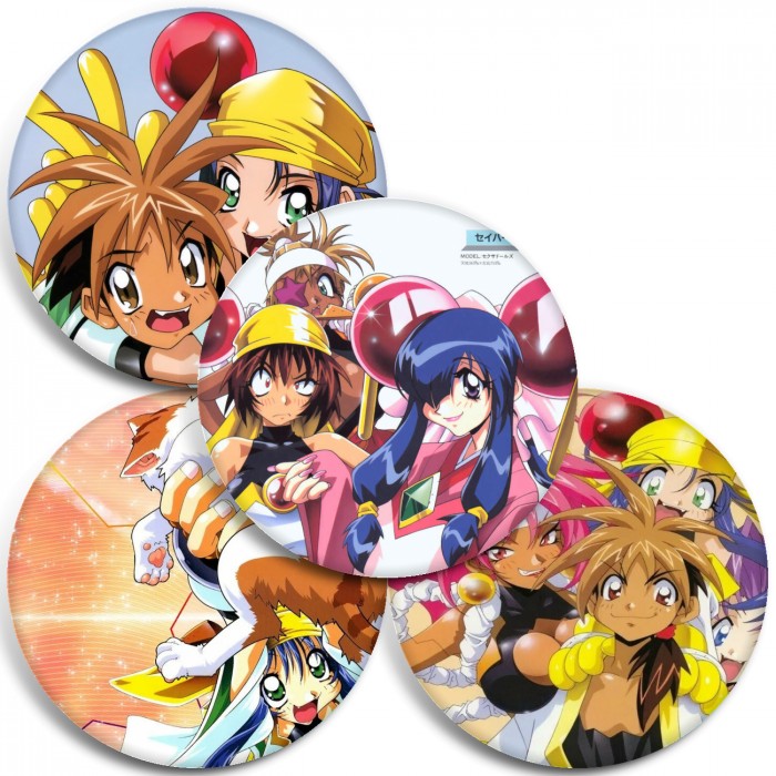 Несколько видов значков с персонажами вселенной Воины-марионетки Джей.