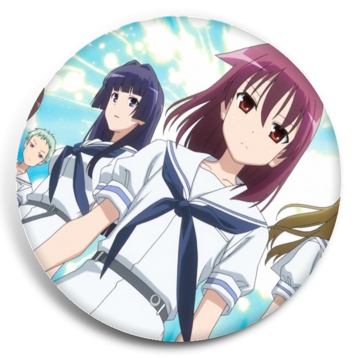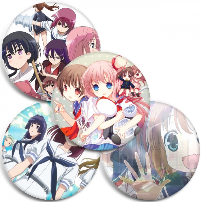 Несколько видов значков с персонажами вселенной Саки на национальном чемпионате.
