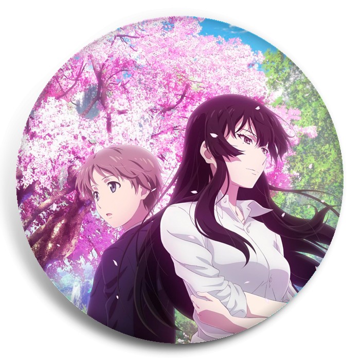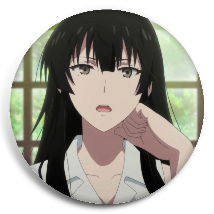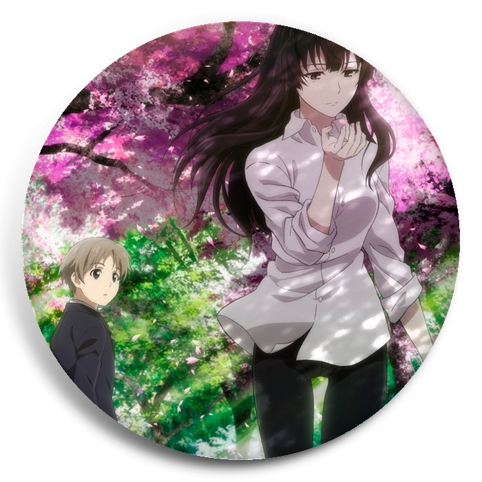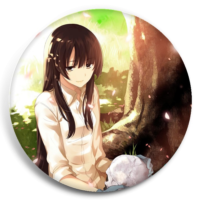 Несколько видов значков с персонажами вселенной Труп под ногами Сакурако.