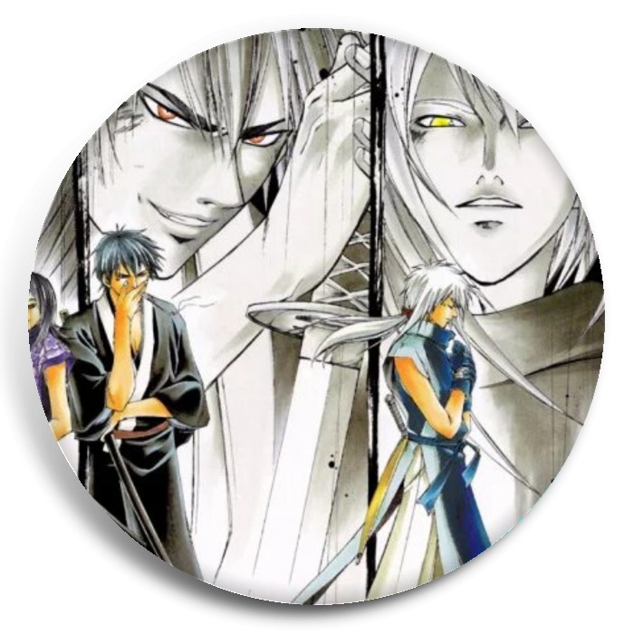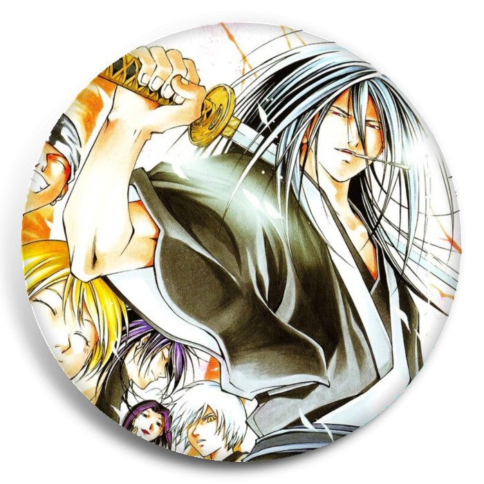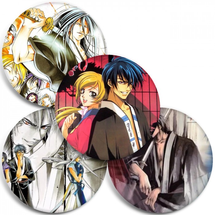 Несколько видов значков с персонажами вселенной Самурай Кё.
