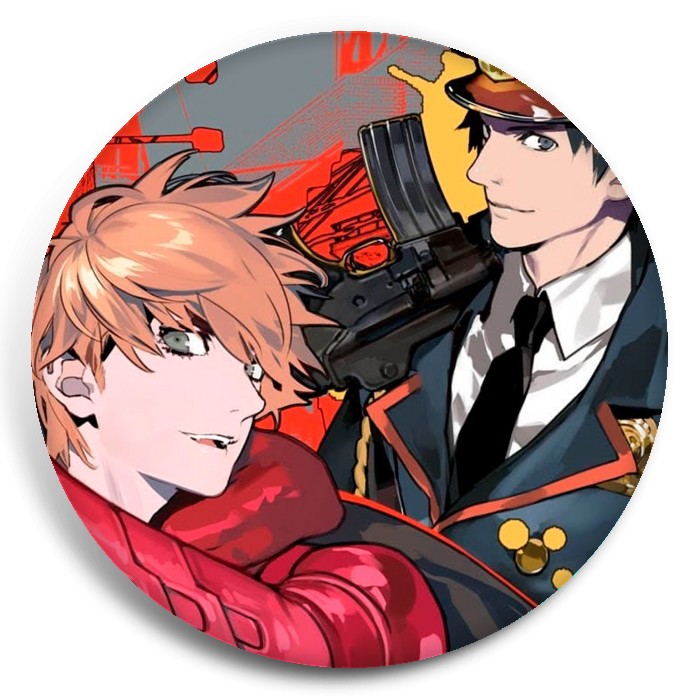 Несколько видов значков с персонажами вселенной Самурай Фламенко.
