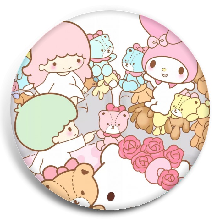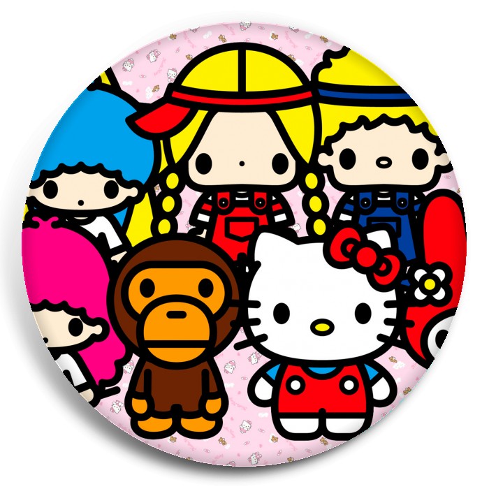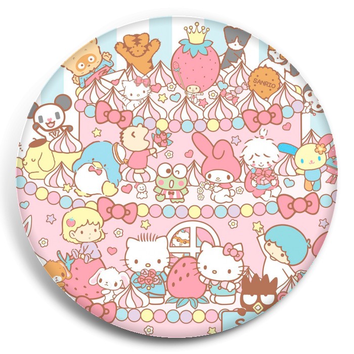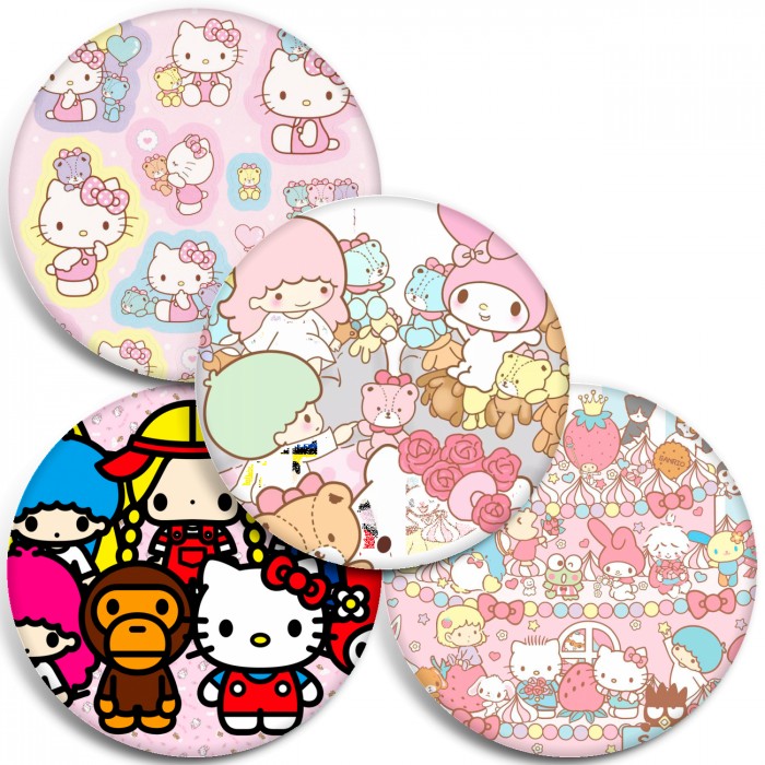 Несколько видов значков с персонажами вселенной Санрио.