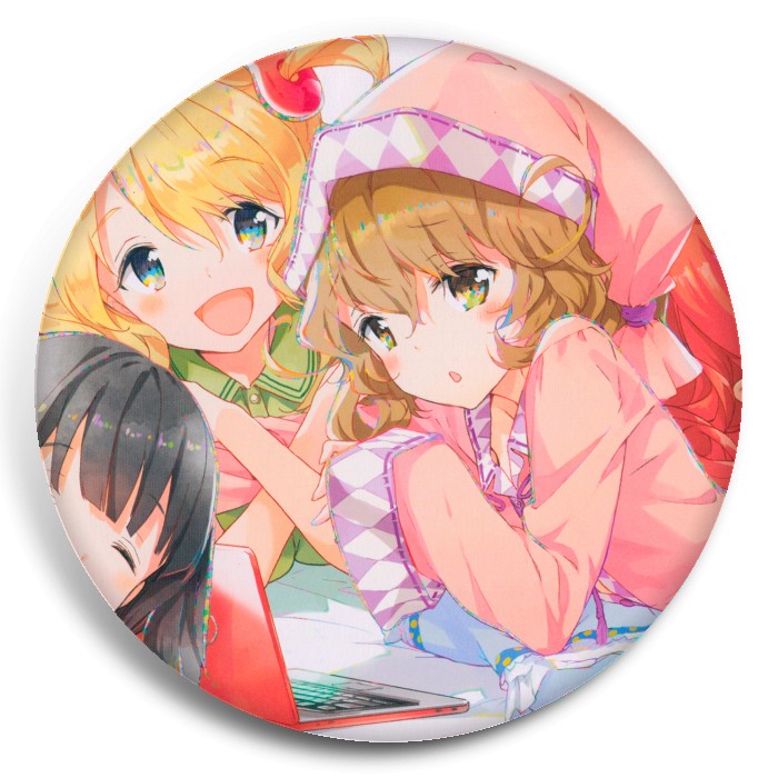 Несколько видов значков с персонажами вселенной Сасами-сан@Лентяйничество.
