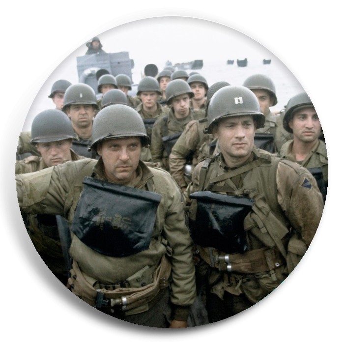 Несколько видов значков с персонажами вселенной Спасти рядового Райана.