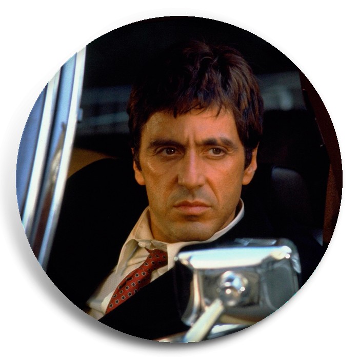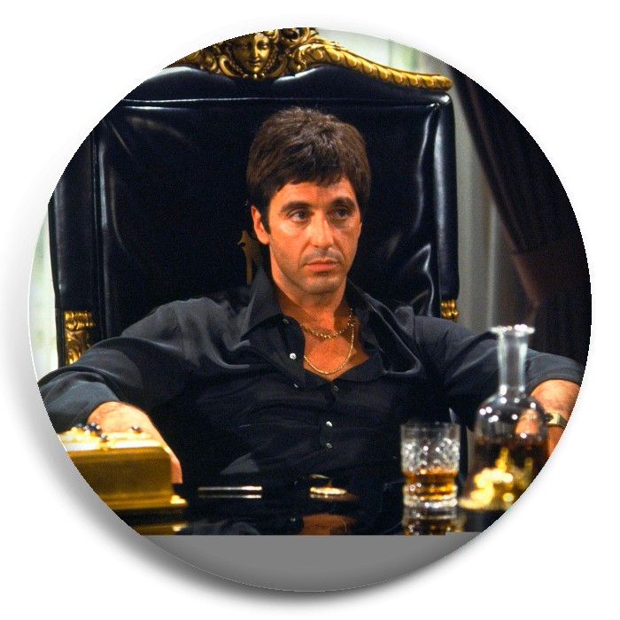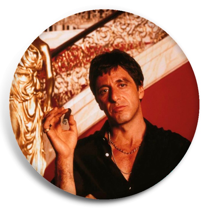 Несколько видов значков с персонажами вселенной Лицо со шрамом.