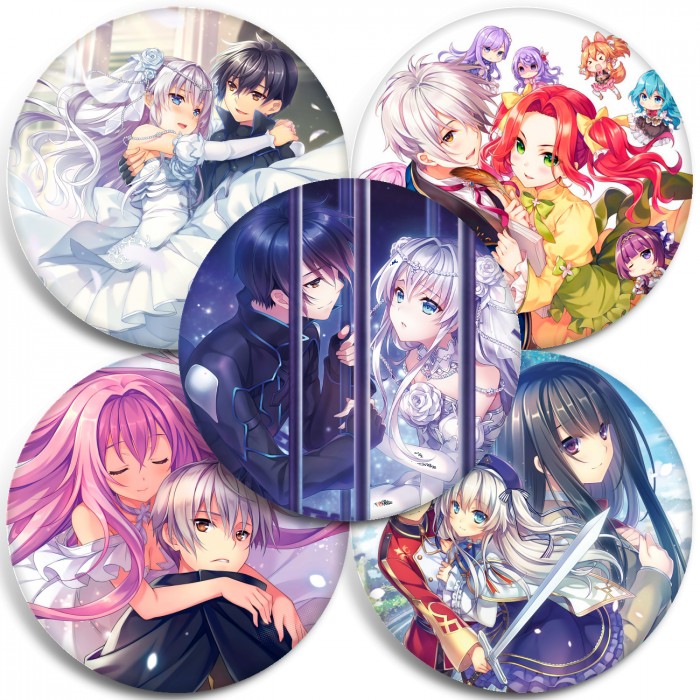 Несколько видов значков с персонажами вселенной Мифический дух: Хроники.