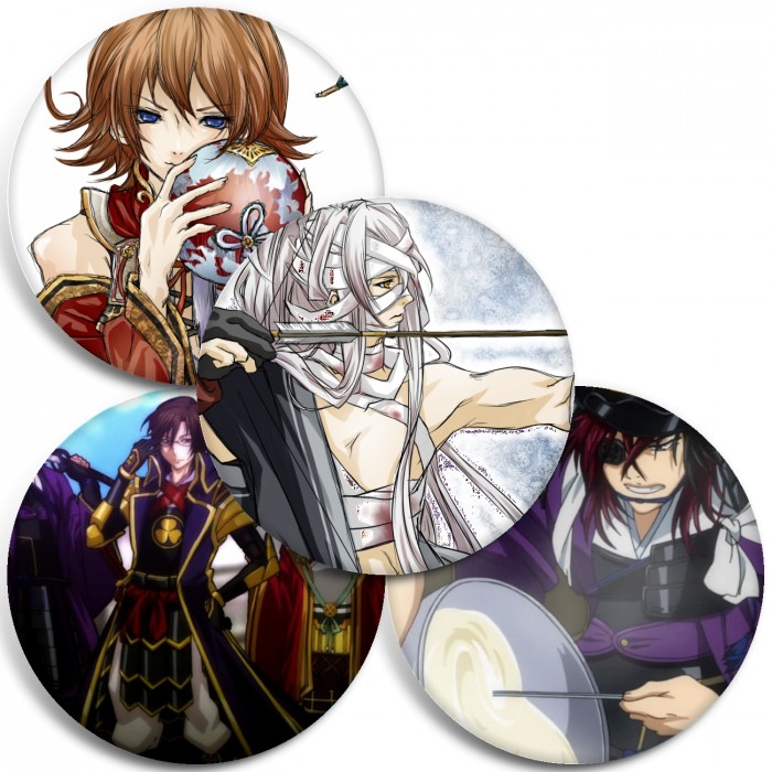 Несколько видов значков с персонажами вселенной Рай Сэнгоку.