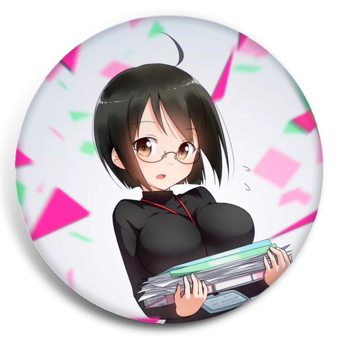 Несколько видов значков с персонажами вселенной Служащий x Служба.