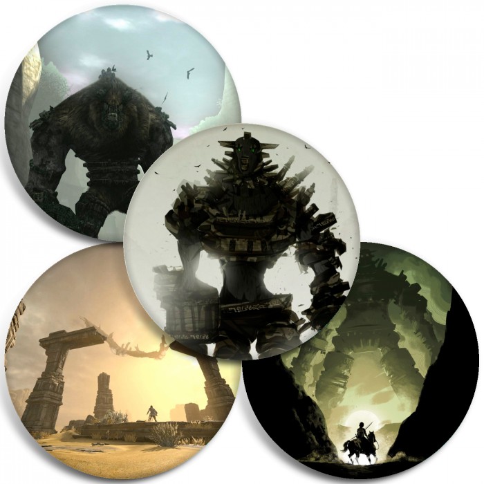 Несколько видов значков с персонажами вселенной Shadow of the Colossus.