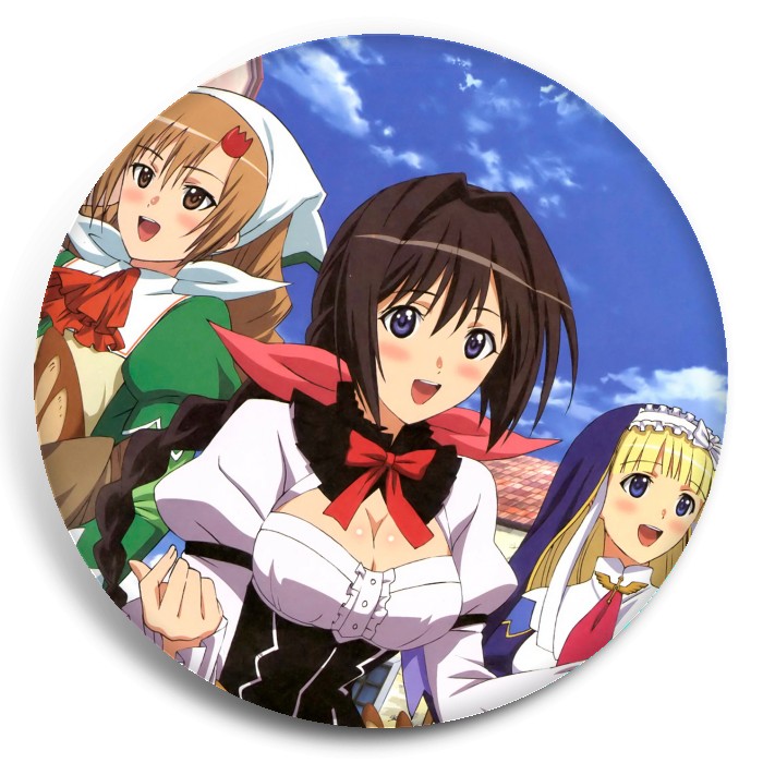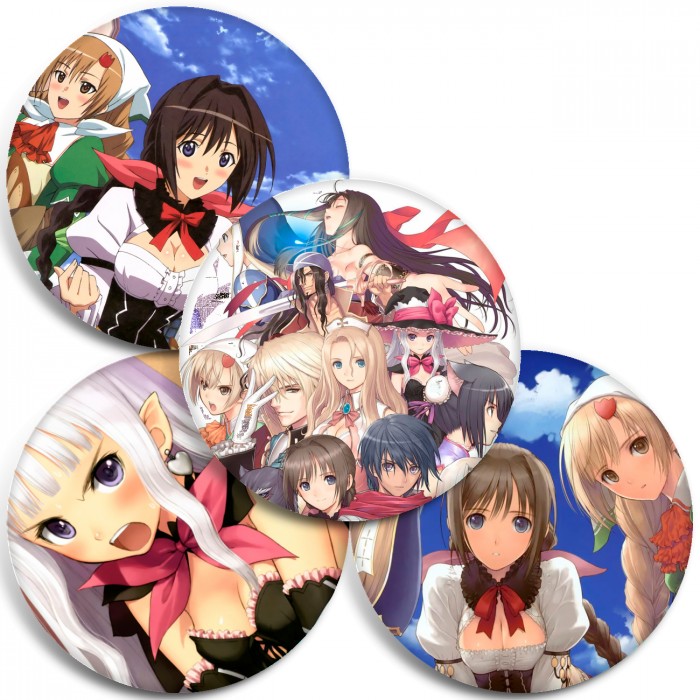 Несколько видов значков с персонажами вселенной Сияющие сердца: Без хлеба куска везде тоска!.