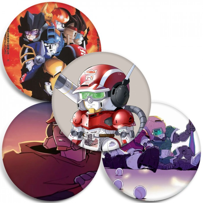 Несколько видов значков с персонажами вселенной Ураган! Железный лидер.