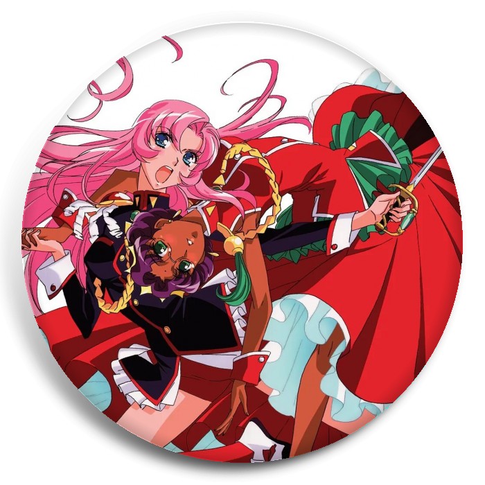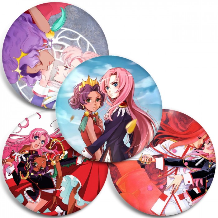 Несколько видов значков с персонажами вселенной Юная революционерка Утэна.