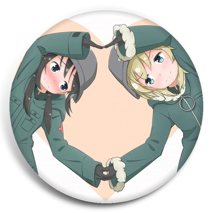 Несколько видов значков с персонажами вселенной Девушки в последнем путешествии.