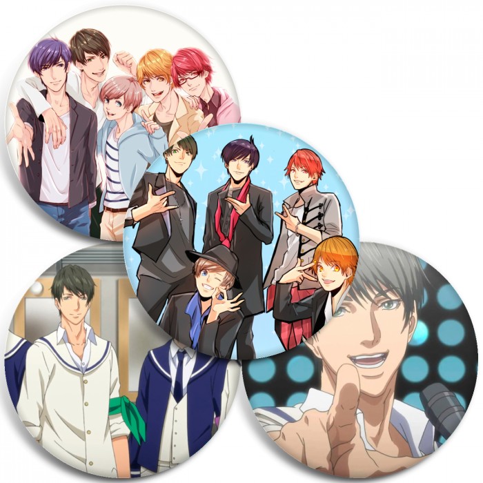 Несколько видов значков с персонажами вселенной Мальчики Голливуда.