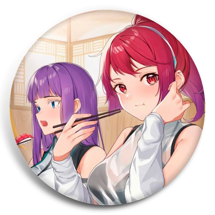 Несколько видов значков с персонажами вселенной Тотальный гарем.