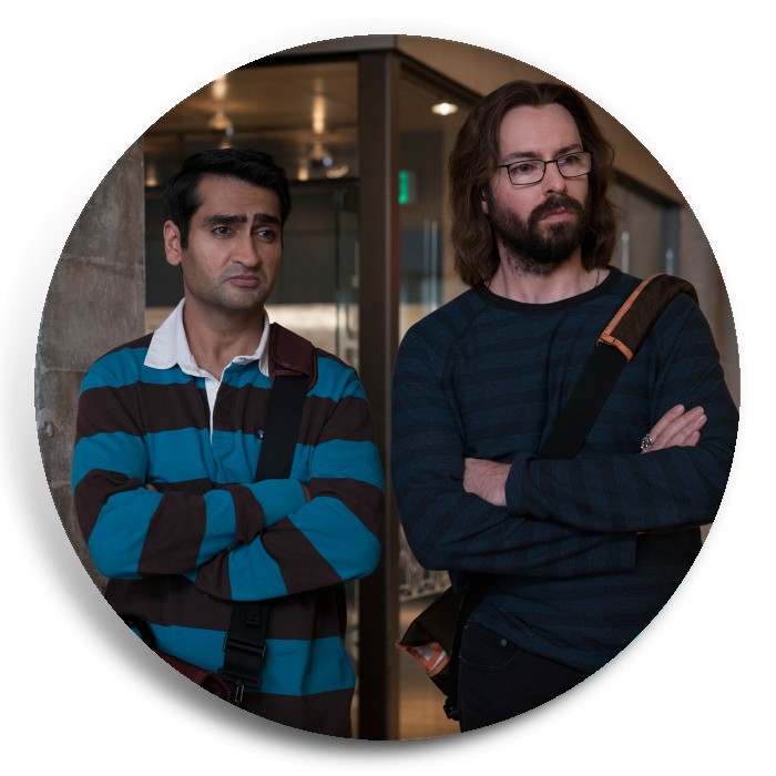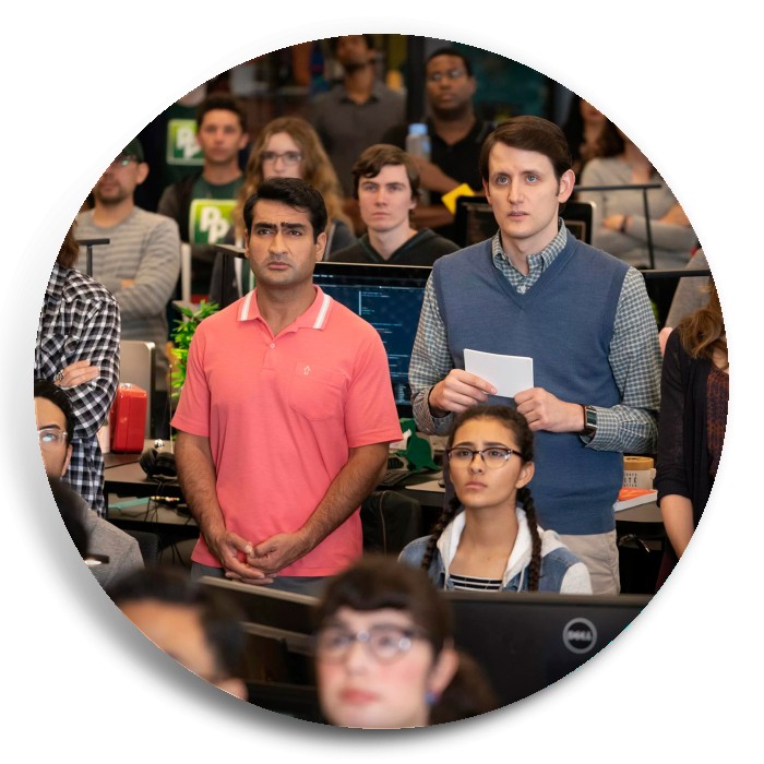 Несколько видов значков с персонажами вселенной Силиконовая долина.