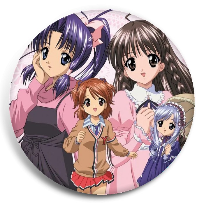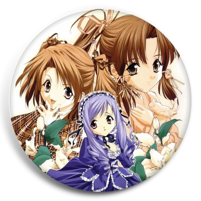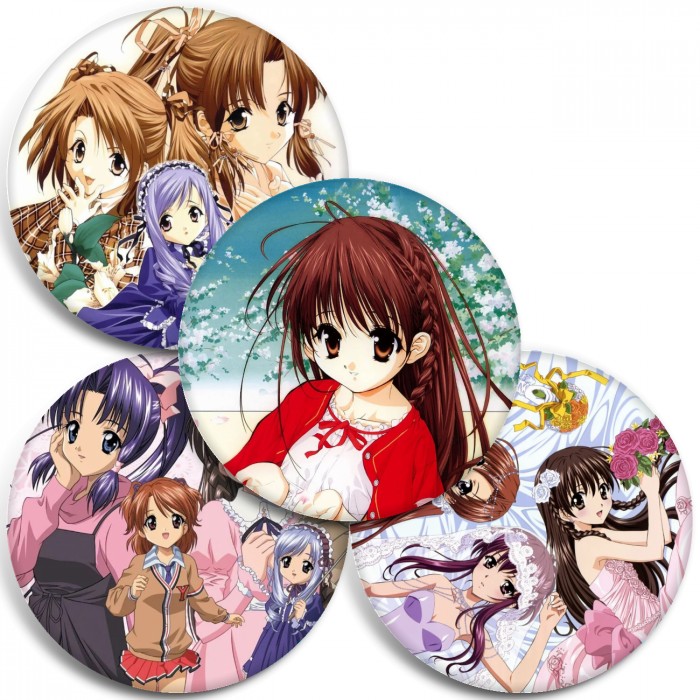 Несколько видов значков с персонажами вселенной Сёстры-принцессы.