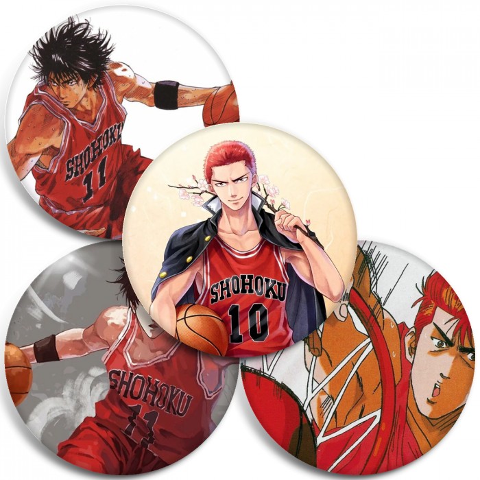 Несколько видов значков с персонажами вселенной Слэм-данк.