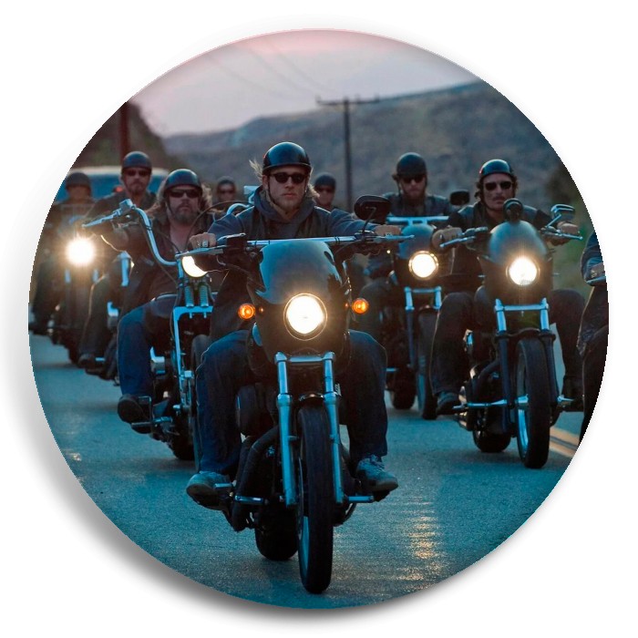 Несколько видов значков с персонажами вселенной Сыны анархии.