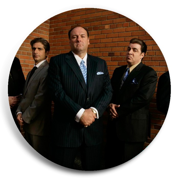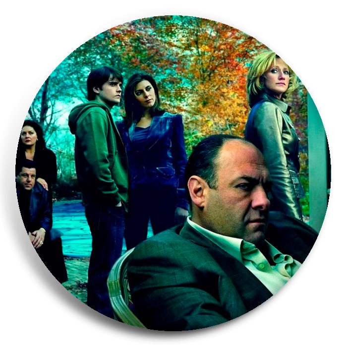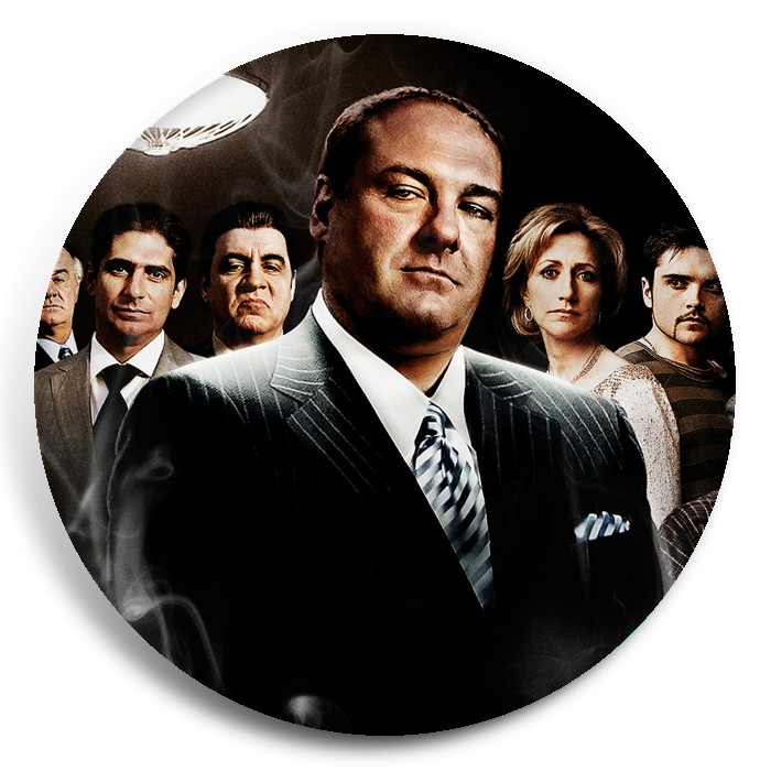 Несколько видов значков с персонажами вселенной Клан Сопрано.