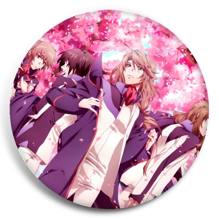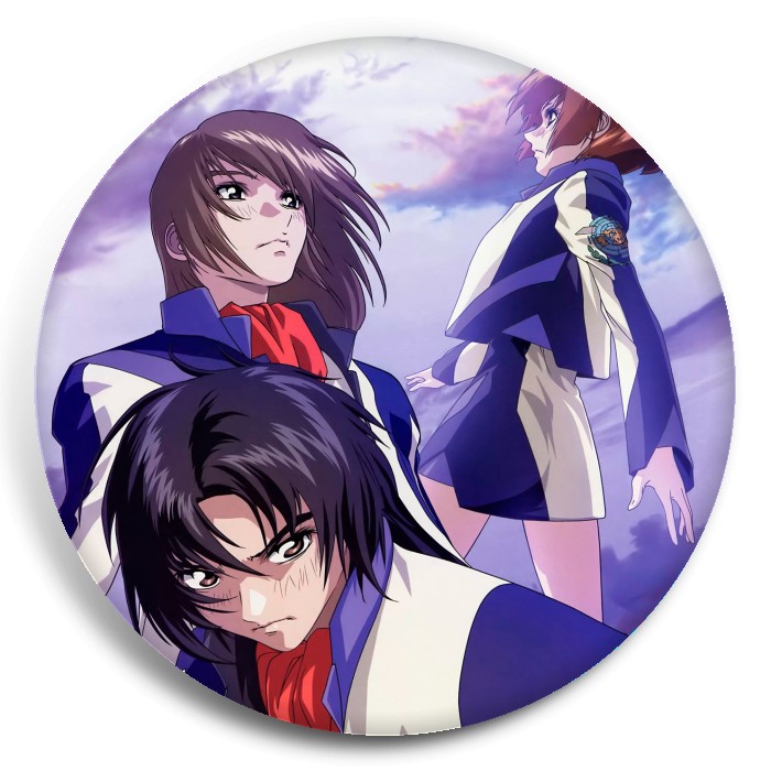 Несколько видов значков с персонажами вселенной Небесный Фафнир: Мёртвый агрессор.