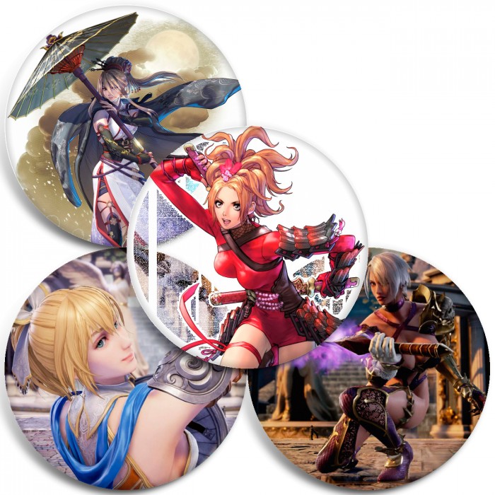 Несколько видов значков с персонажами вселенной SoulCalibur.