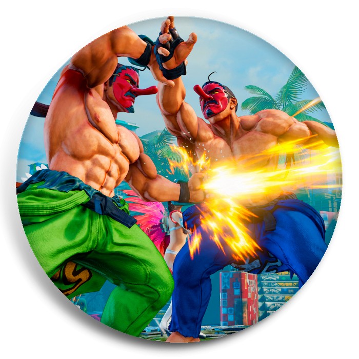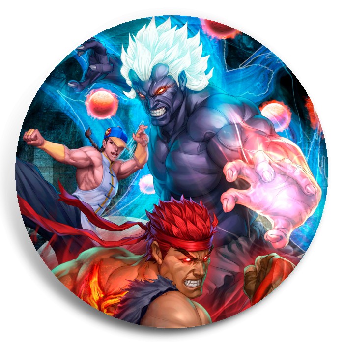 Несколько видов значков с персонажами вселенной Стрит Файтер.