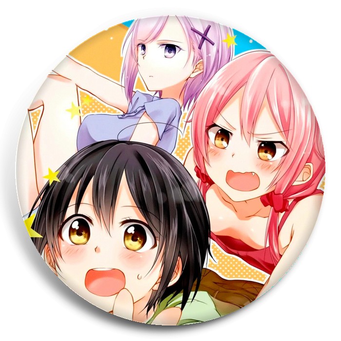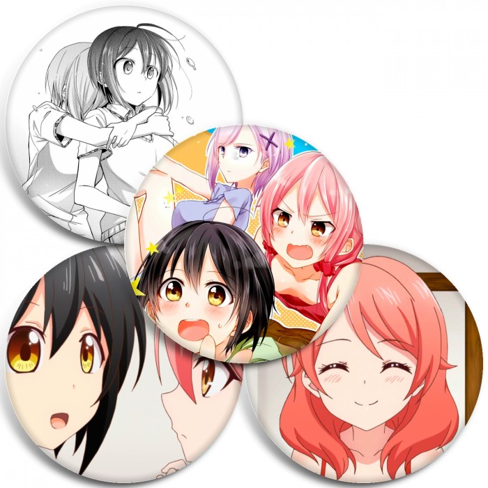 Несколько видов значков с персонажами вселенной Любовные страсти пансиона Татибана.
