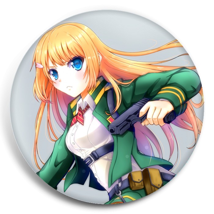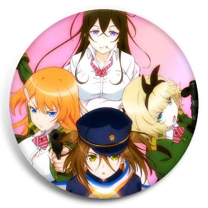 Несколько видов значков с персонажами вселенной Антимагическая академия: 35-е экспериментальное подразделение.