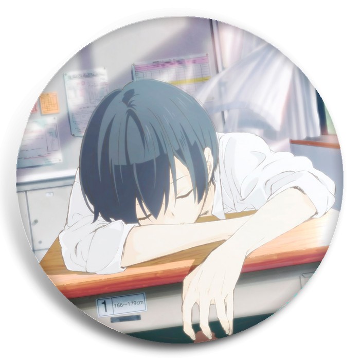 Несколько видов значков с персонажами вселенной Всегда вялый Танака-кун.