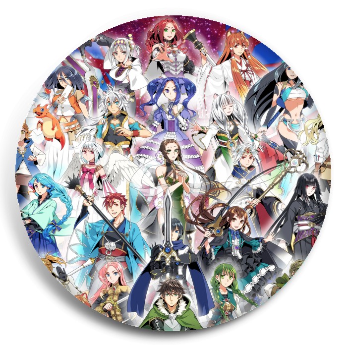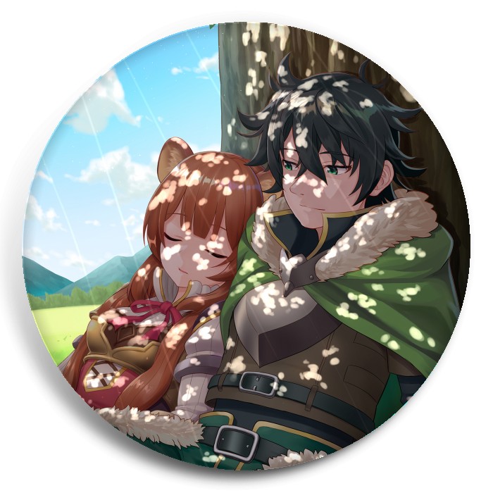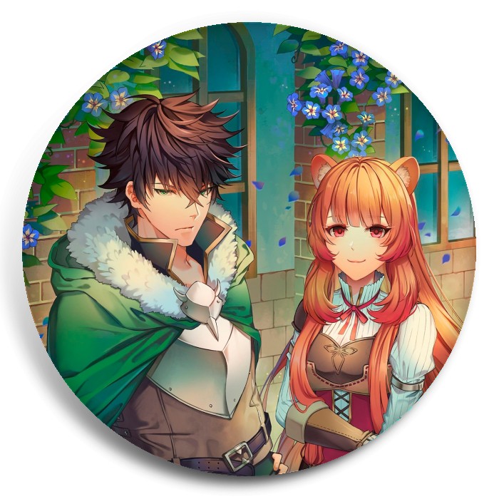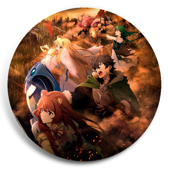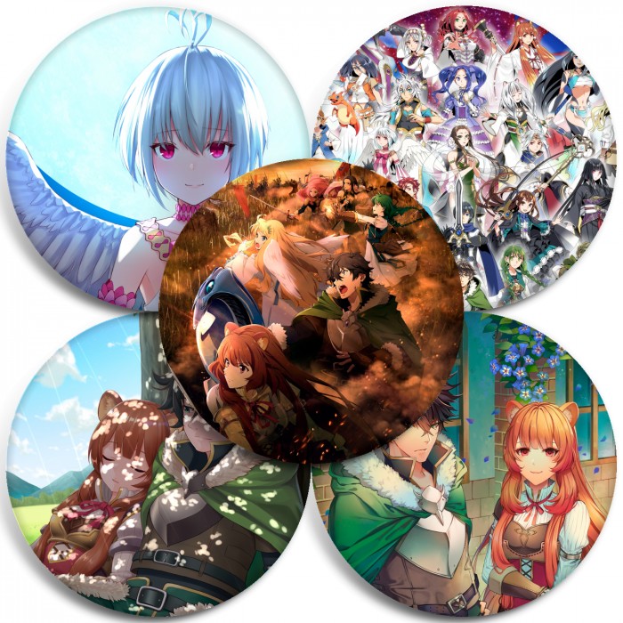 Несколько видов значков с персонажами вселенной Восхождение героя щита.