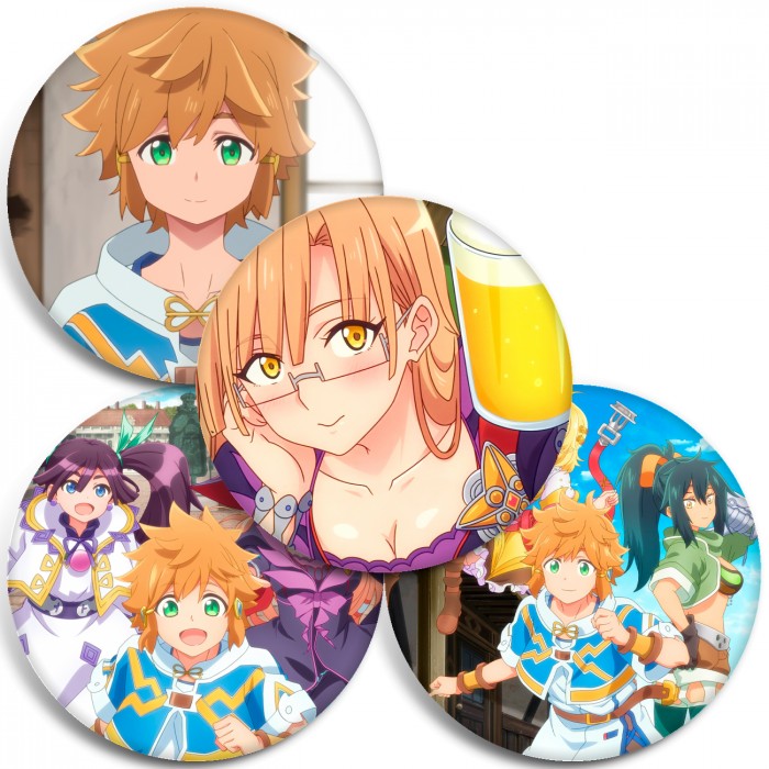 Несколько видов значков с персонажами вселенной История о пареньке из деревни; расположенной перед сложнейшим подземельем.