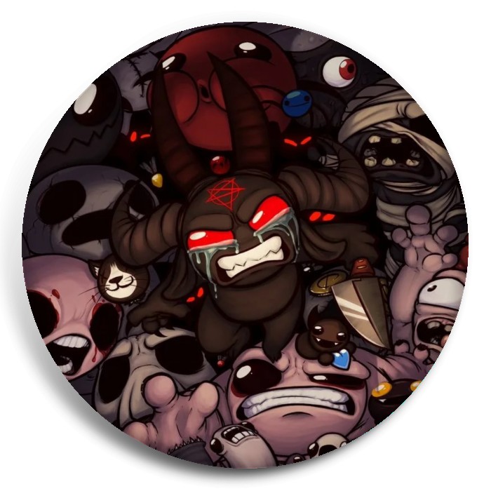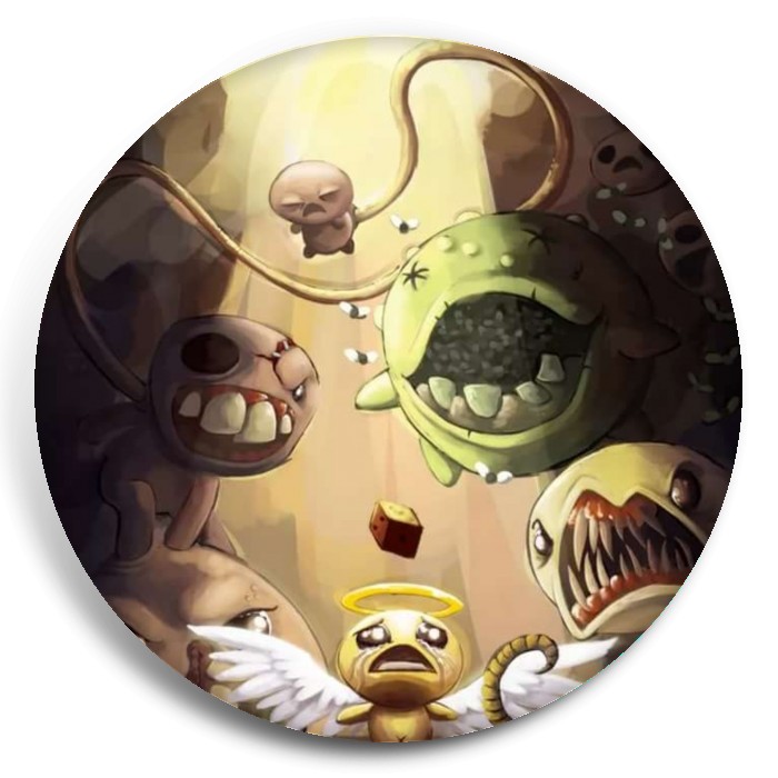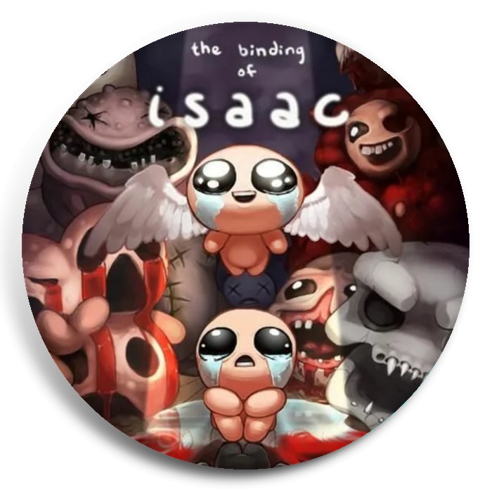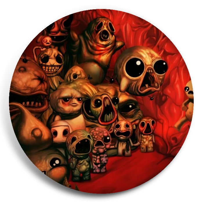 Несколько видов значков с персонажами вселенной The Binding of Isaac: Rebirth.
