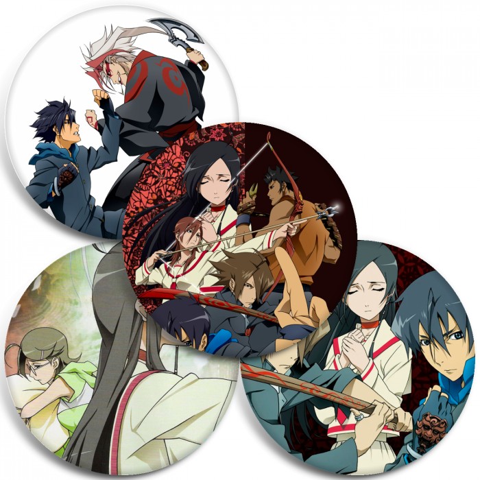Несколько видов значков с персонажами вселенной Токийская школа магов.