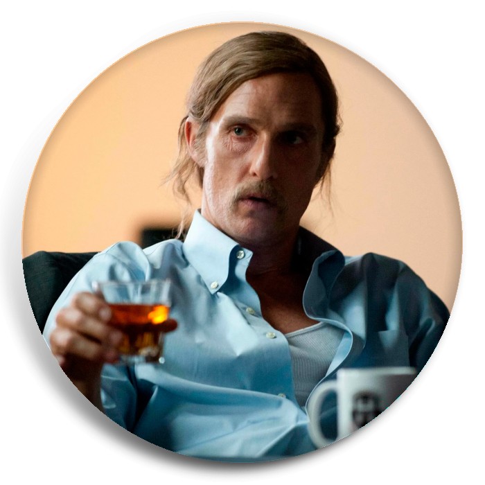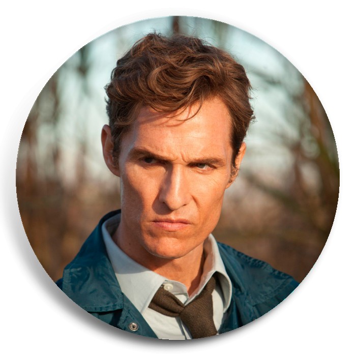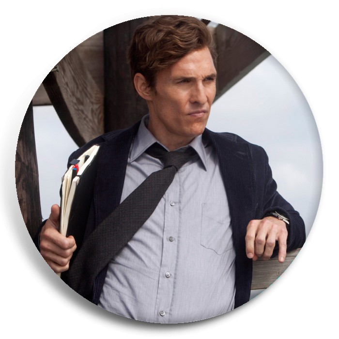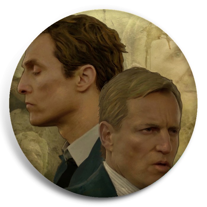 Несколько видов значков с персонажами вселенной Настоящий детектив.