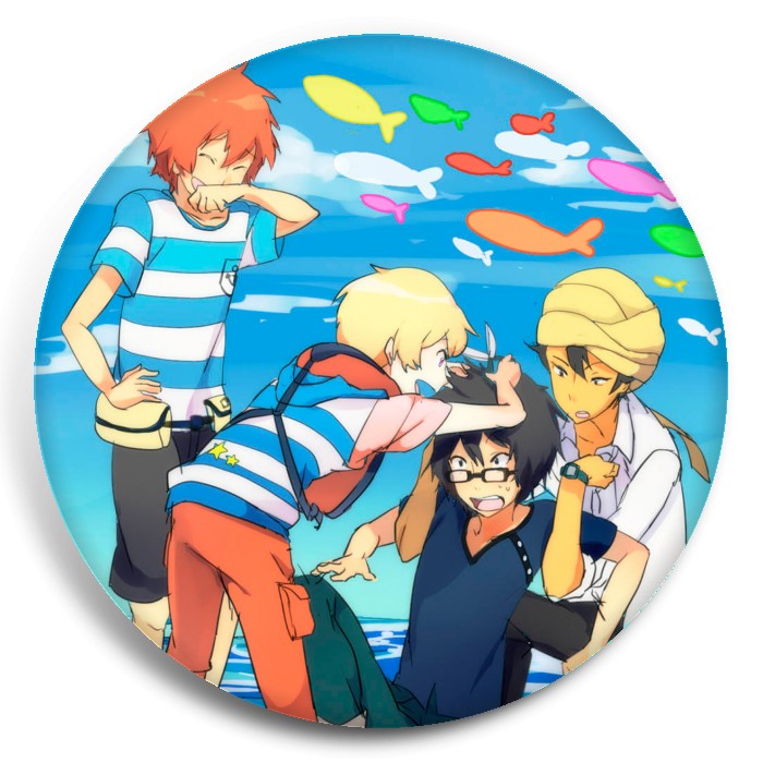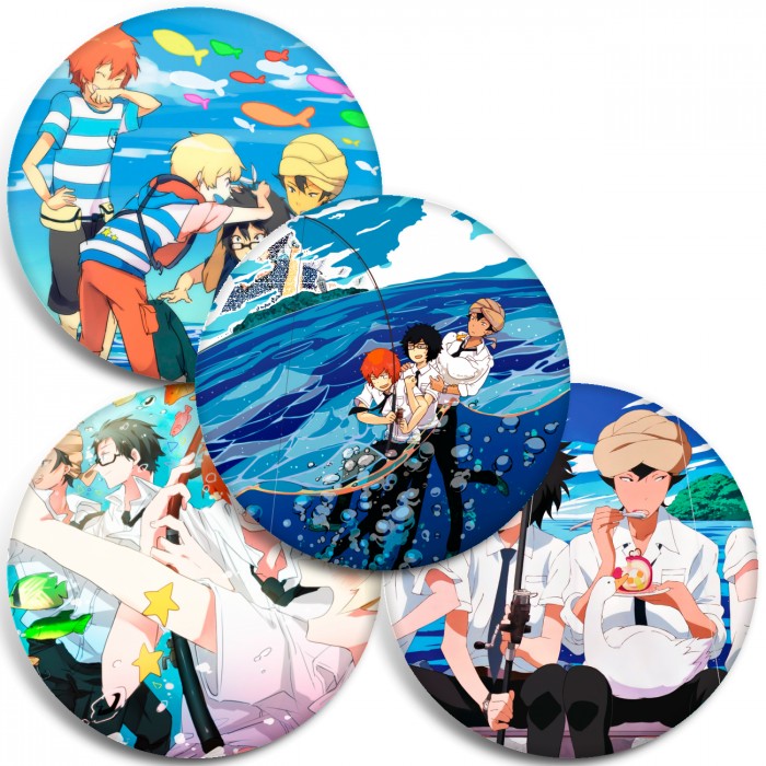 Несколько видов значков с персонажами вселенной Радости рыбалки.