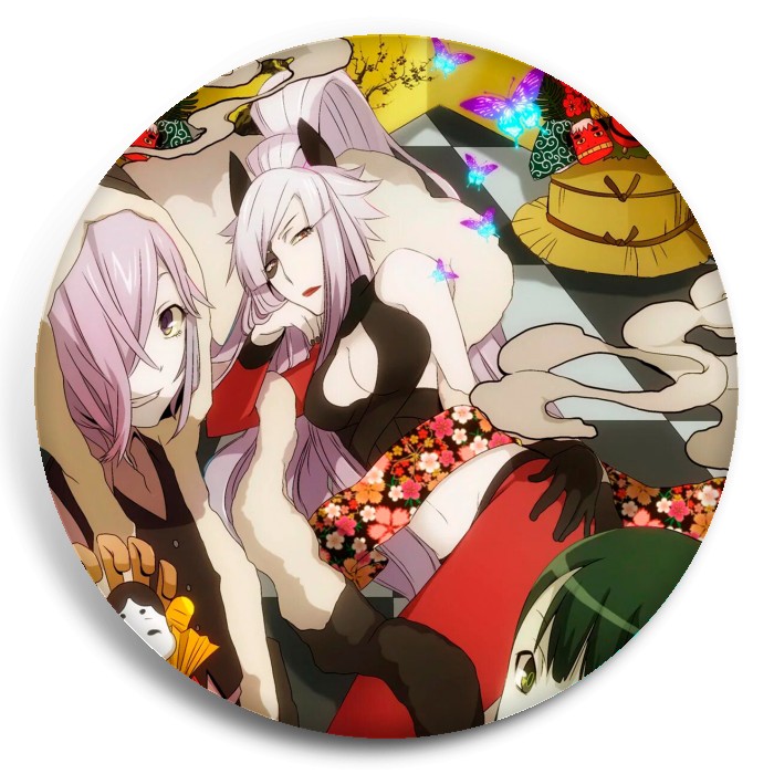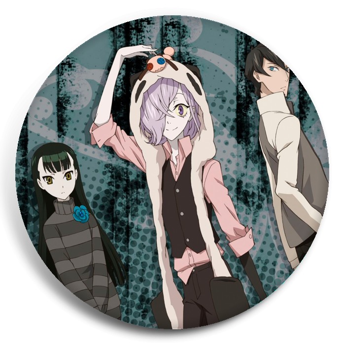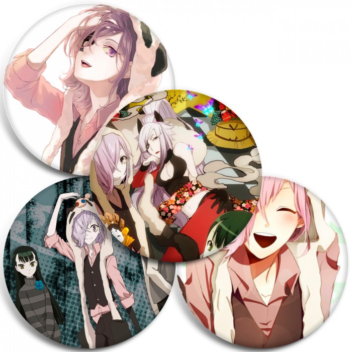 Несколько видов значков с персонажами вселенной Ан-го.