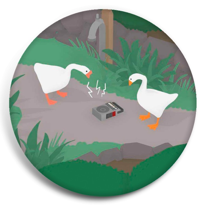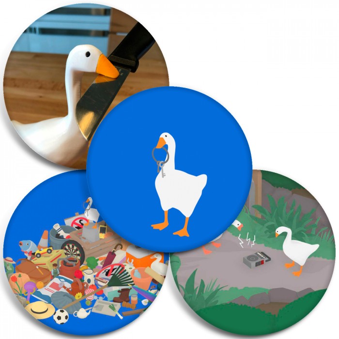 Несколько видов значков с персонажами вселенной Untitled Goose Game.