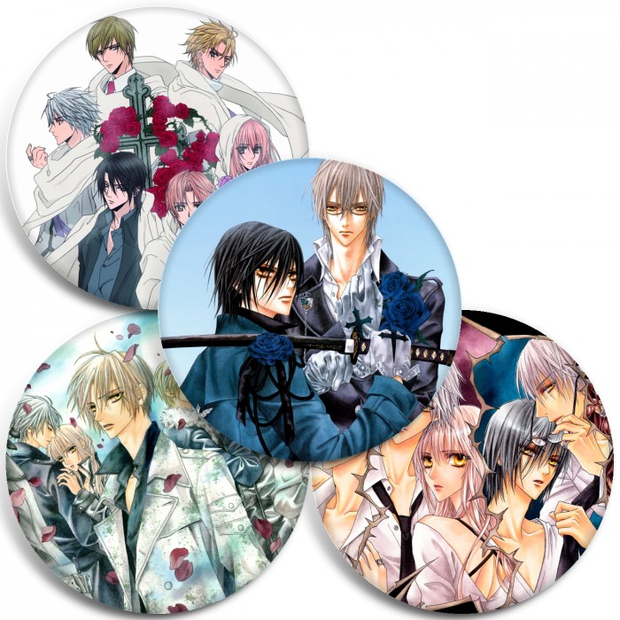 Несколько видов значков с персонажами вселенной Предательство знает моё имя.
