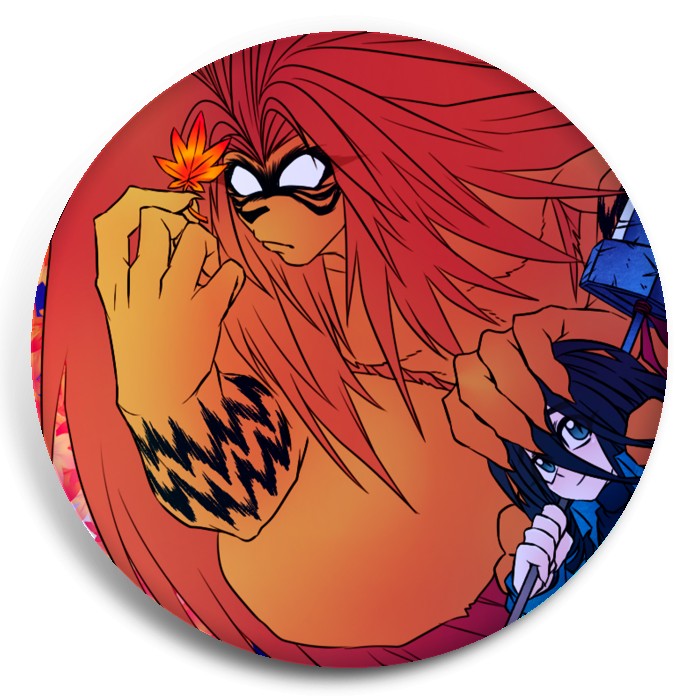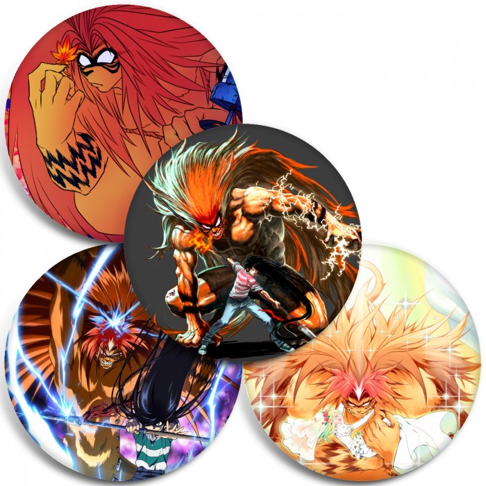 Несколько видов значков с персонажами вселенной Усио и Тора.