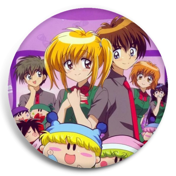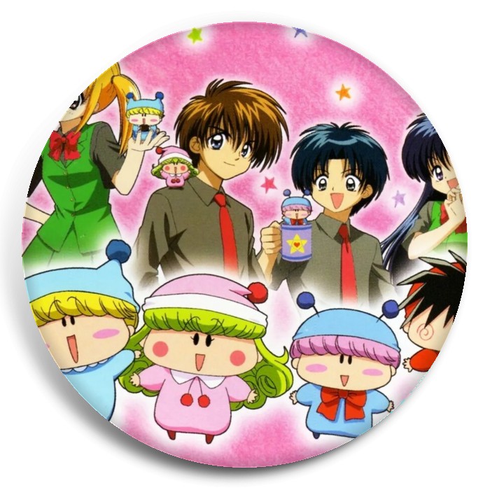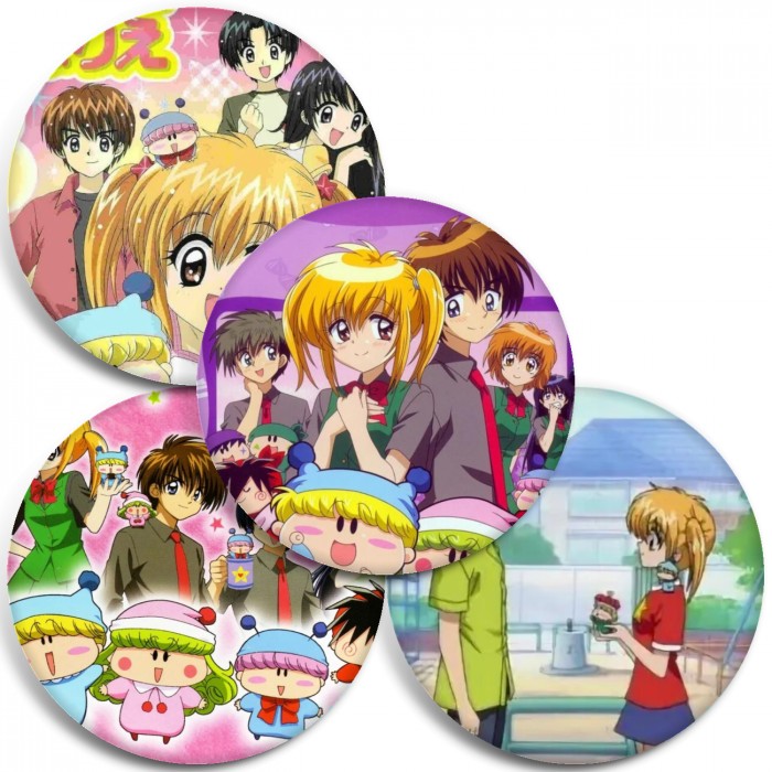 Несколько видов значков с персонажами вселенной Эгоистичная фея Мирумо де Пон!.