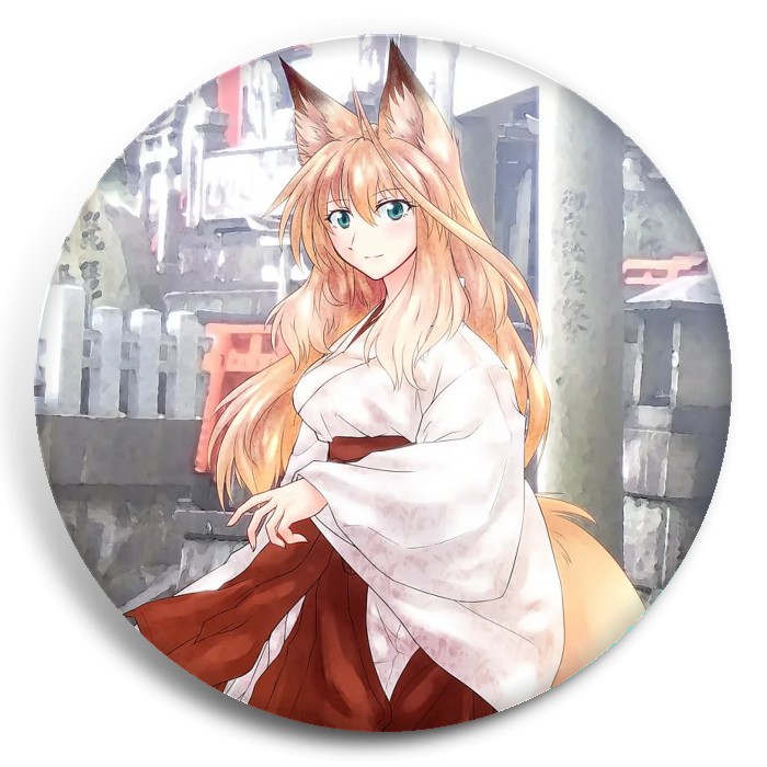Несколько видов значков с персонажами вселенной Инари в нашем доме.