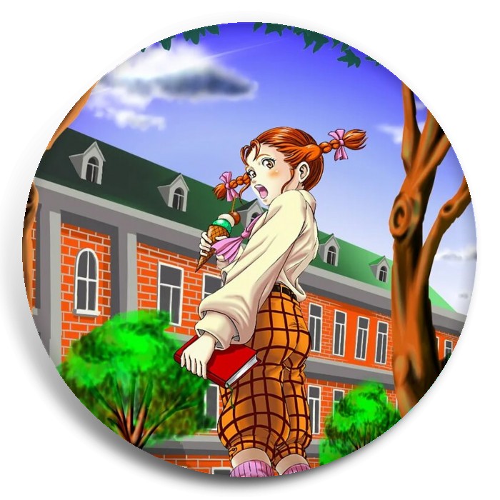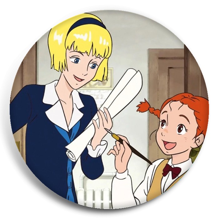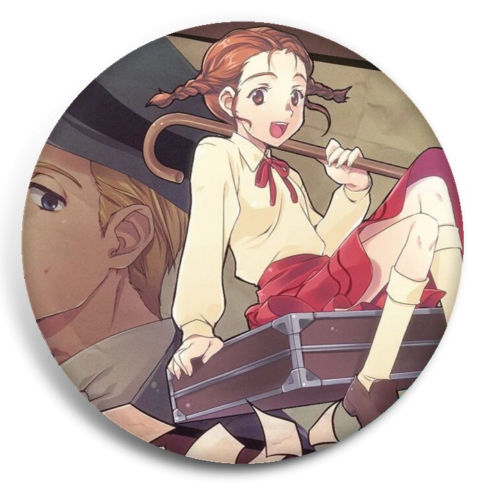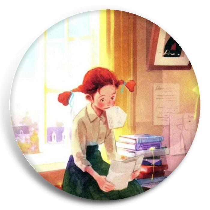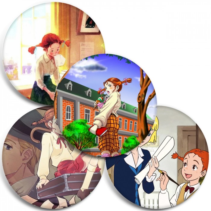 Несколько видов значков с персонажами вселенной Длинноногий папочка.
