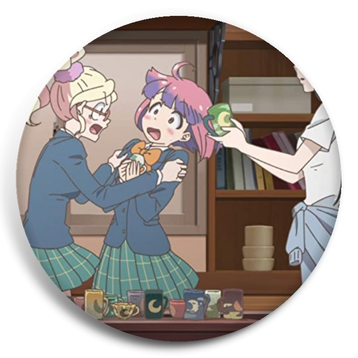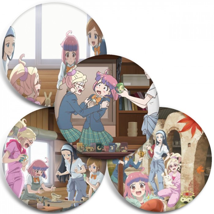 Несколько видов значков с персонажами вселенной Давайте тоже слепим кружку.