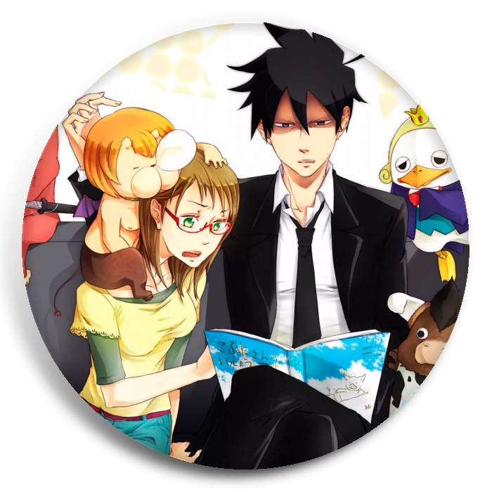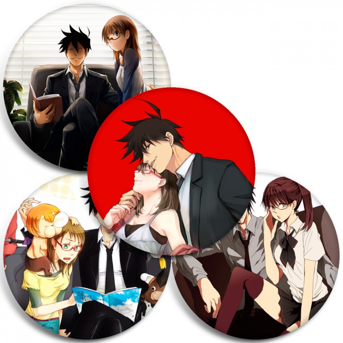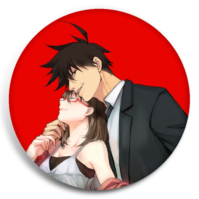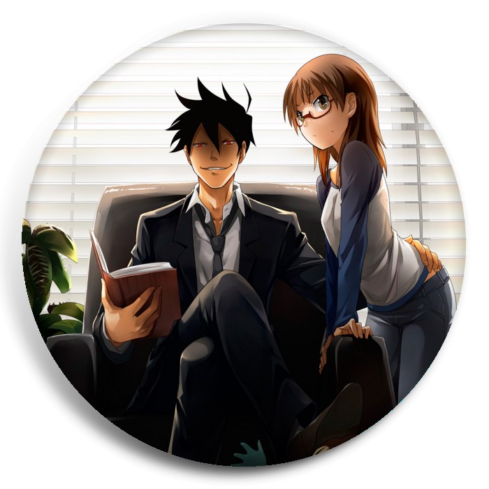 Несколько видов значков с персонажами вселенной Явись; Азазель!.