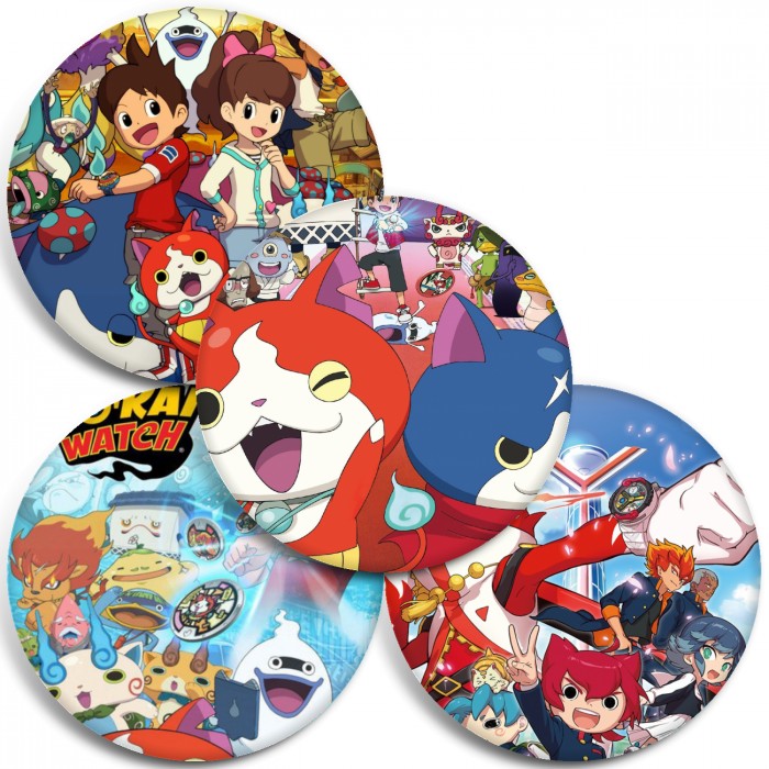 Несколько видов значков с персонажами вселенной Часы ёкаев.