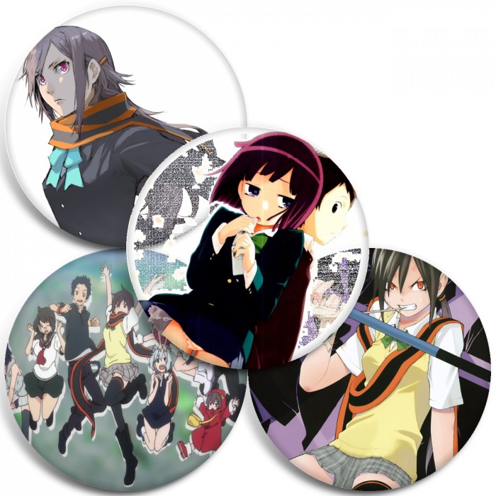Несколько видов значков с персонажами вселенной Вишнёвый квартет.
